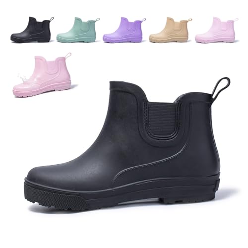 Womens Ankle Rain Boots Lightweight Waterproof Non Slip Rubber Rain Boots Ladies Slip On Outdoor Garden Shoes