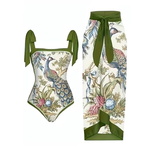 Women Split Two Piece Swimwear Tropical Print Bikini Sets Cropped Swim Tops with Boyshorts Two Piece Bathing Suit