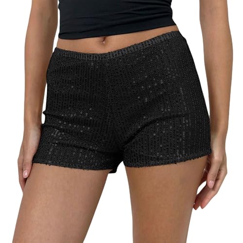 UOIGHF Women's Sequins Shorts Elastic Waist Sparkly Straight Leg Shorts Glitter Party Shorts Hot Pants Party Black