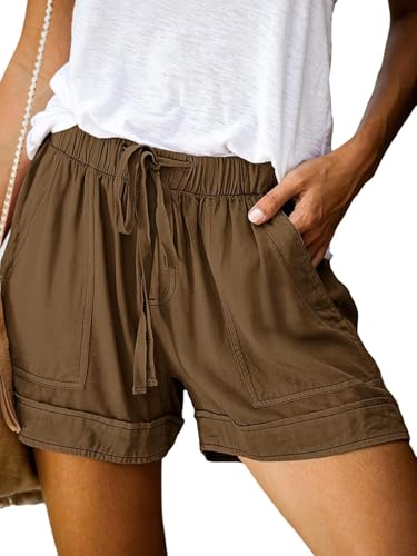 YOCUR Womens Lightweight Shorts Casual Baggy Trendy Short Pants Elastic Waist Drawstring Comfy Denim Shorts