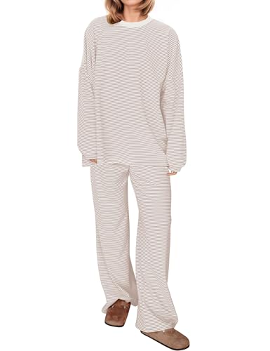 Ekouaer Pajama Sets for Women 2 Piece Lounge Set Short Sleeve Tops and Long Pants Soft Comfy Pjs Sleepwear Outfits S-XXL