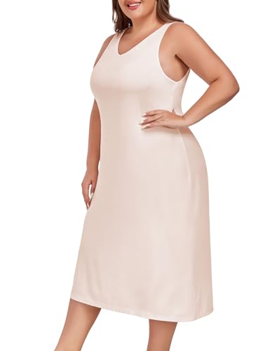 MANCYFIT Plus Size Full Slip for Women Long Slip Dress Spaghetti Strap Cami Nightgown