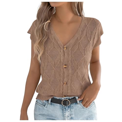 SHEWIN Women's Summer Sweater Vest Short Sleeve Tops Casual Crewneck Knit Tank Tops Loose Fit 2026 Trendy Shirts