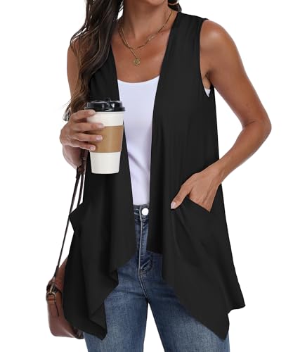 Flovey Womens Long Sleeve Open Front Cardigans Chunky Knit Draped Sweaters Outwear with Pockets