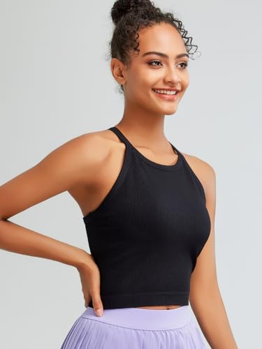 YEOREO Women's High Neck Double Lined Sleeveless Tops Full Length Fitted Going Out Tank Top Workout Stretch Basic Tee