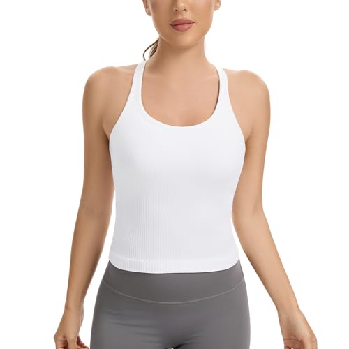 Danysu V Neck Racerback Tank Top for Women Padded Ribbed Long Tank Fitted Basic Cami Tops