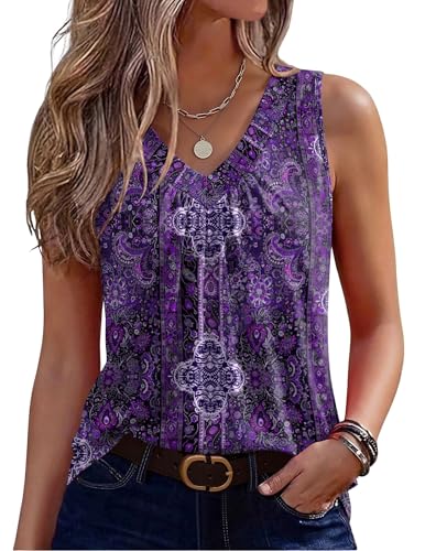 Tencede 2026 Summer Tank Tops for Women Sleeveless V Neck Loose Flowy Floral Print Blouses S-2XL