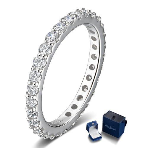Moissanite and Sapphire/Ruby/Emerald Eternity Rings for Women, Solid 925 Sterling Silver, Stackable Wedding Band, Anniversary Valentines Mother's Day Gifts, Size 4-11