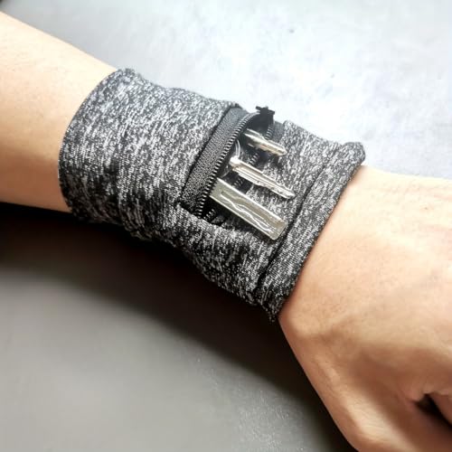 1PC Unisex Wrist Wallet Bag Polyester with Zipper Adjustable Strap Slim Wristband for Running, Travel, Gym, Grey