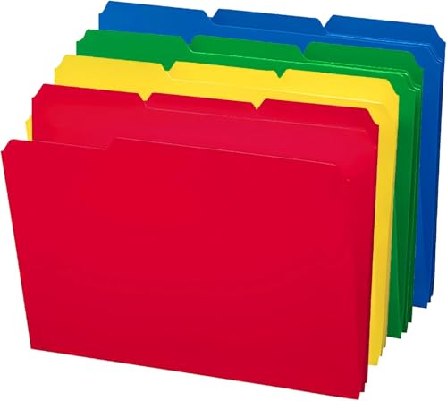 Smead File Folders, 100-Pack, Letter Size, 1/3-Cut Tab, Primary Assorted Colours, Blue Green Orange Red Yellow, Colour-Coded Filing for Home Office, School and Business Organization