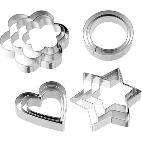 Metal Cookie Cutters Set- Heart, Star, Round, Flower - 12Pcs Cookie Cutters - Heart Cookie Cutter Star Cookie Cutter Small Round Cutter Flower Cookie Cutter Star Heart Shaped Cookie Cutters for Baking