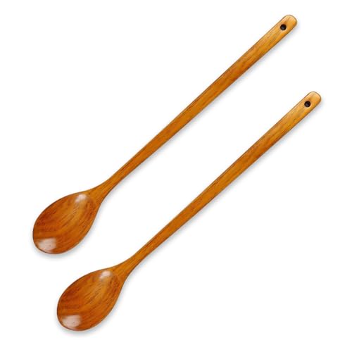 Long Wooden Spoon, 20 Inch Heat-Resistant Wooden Cooking Spoons with Smooth Anti-Scalding Handle, Kitchen Utensils with Hanging Hole for Stirring