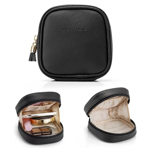 Vlando Small Makeup Bag for Women Girls, Mini Makeup Bag Pouch for Purse, Waterproof Cosmetic Bag with Wide-Opening Zipper, Portable Travel Makeup Bag Toiletry Bag, Travel Essentials, Black