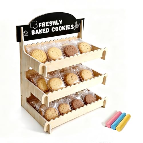Cookie Display Stand for Vendors,Wooden Bakery Display Stand for Bakers,Tool-Free Stand with Chalkboard Sign for Market Booths &Craft Fairs.Tiered Dessert Stand for Cupcakes, Muffins & Pastries.Easy Assembly Fit for Small Shop & Events.