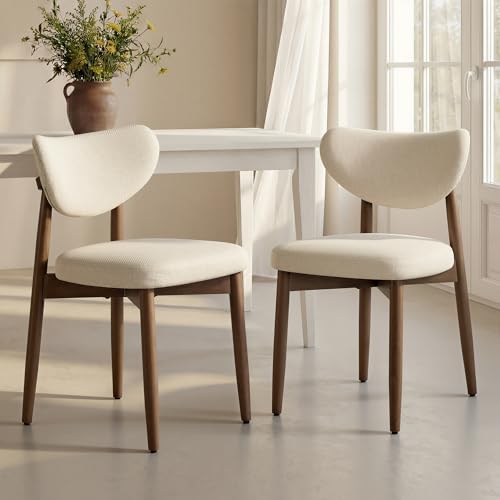 LivinVeluris Chairs Set of 2, Modern Dining Chairs Mid-Century, Round Kitchen Chairs, Boulce Dining Chair with Black Metal Legs, Kitchen Room (Cream White/Black Legs) (Set of 2)