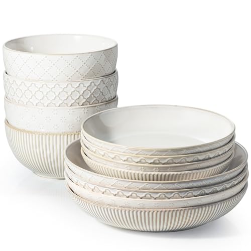 Sweejar Ceramic Dinnerware Sets for 4,12 Pieces Boho Plates and Bowls for Housewaring Gift,Bohemian Style Dish Set,Dishwasher and Microwave Safe(Colorful)