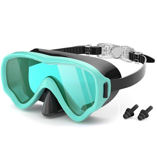 COOLOO Kids Goggles with Nose Cover, 180掳 Wide View Swimming Goggles for Kids 4-16, No More Hair Snags Anti-Fog No-Leak Snorkel Mask for Boys Girls Youth