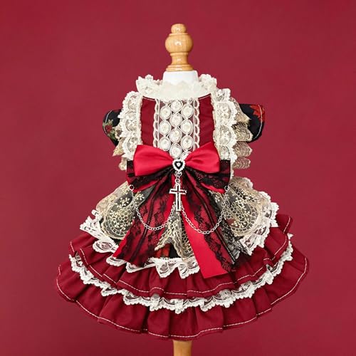 Anelekor Fancy Dog Dresses with Leash Ring, Embroidered Dog Wedding Dress, Bow Puppy Clothes for Small pet Girl Multi-Layer Lace Tutu Cat Outfit for Kitten Chihuahua Yorkie, Small