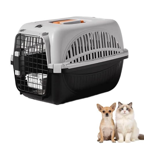 Dog & Cat Transport Pour Chat - Plastic Kennel Hard Sided | Airline Approved Pet Carrier for Mini Dogs and Cats | Portable Crate with Steel Wire Door, for Car, Airplane, Outdoor (Gray Black)
