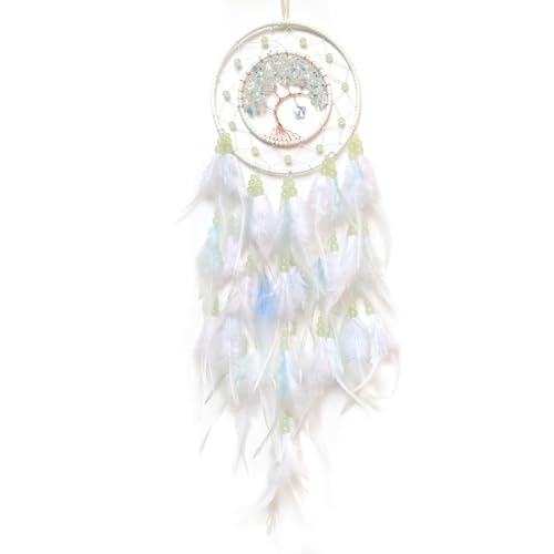 KHOYIME LED Dream Catcher Light Up Tree of Life Dreamcatcher with Healing Crystal Stone Handmade Feather Wall Hanging for Bedroom Bohemian Home Decor Wedding Ornament Craft Gift