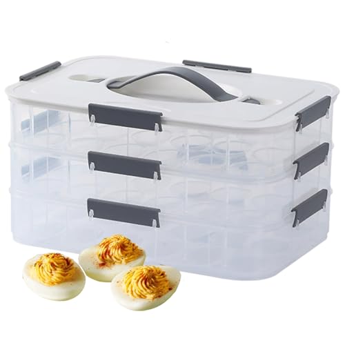 Deviled Egg Containers with Lid 54 Slots Clear Plastic Deviled Egg Tray Carrier Platter with Handle & Snap Lock Stackable Reusable for Fridge, Indoor Decorations