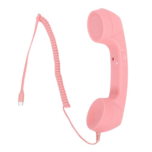 Retro Phone Handset for Cell Phone 鈥 Classic Vintage Handset with Comfortable Grip, Compatible with Smartphones, Easy Plug-and-Play Design for Better Sound Quality (Pink,Type-C)