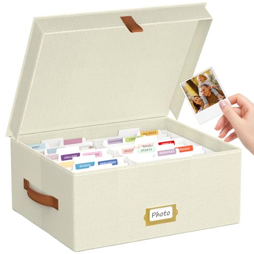 Hiwhy Photo Storage Box 5x7, Linen Photo Box, Memory Box Perfect to Store Your Photo, Pictures, Certificates, Scrapbooking Supplies, Keepsakes and Jewelry Beige