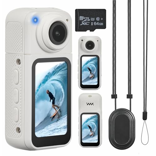 Mini Body Camera with 64GB Storage, 1080P Pocket Video Recorder with 180掳 Rotating Lens,Thumb Size Wearable Body Cam with Screen,Portable Camera for Outdoor, Cycling, Vlog, Travel (White)