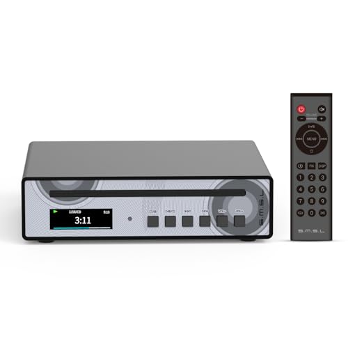 SMSL PL100 Desktop CD Player CS43131 Decoder Chip Headphone Amplifier BCD/CD-R/CD-RW/MP3 CD RCA/3.5 mm Headphone/Optical/Coaxial Digital Output C D Input Remote Control (Silver)