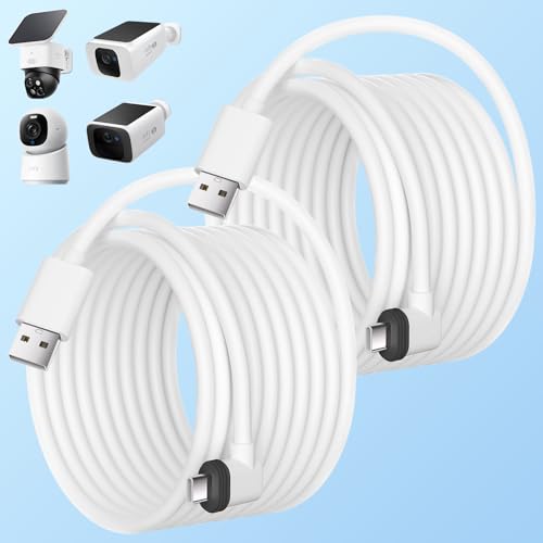 10ft/3M Flat USB C Cable, USB A to USB C Charging Power Cord for Blink Mini 2/Outdoor 4, Ring Pan-Tilt Indoor Cam, eufy Cam S3 Pro, SoloCam S340/S350/S220/C210, and More CCTV Cam-White