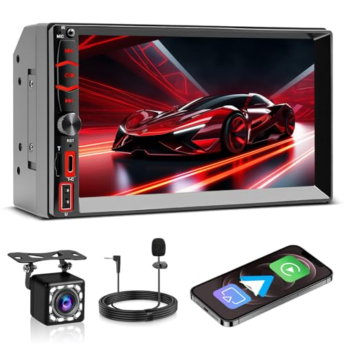 Wireless CarPlay Screen for Car, 7" Portable HD Touchscreen Car Play & Android Auto Receiver with Bluetooth, Voice Control, GPS Navigation, FM Radio, Mirror Link, AUX