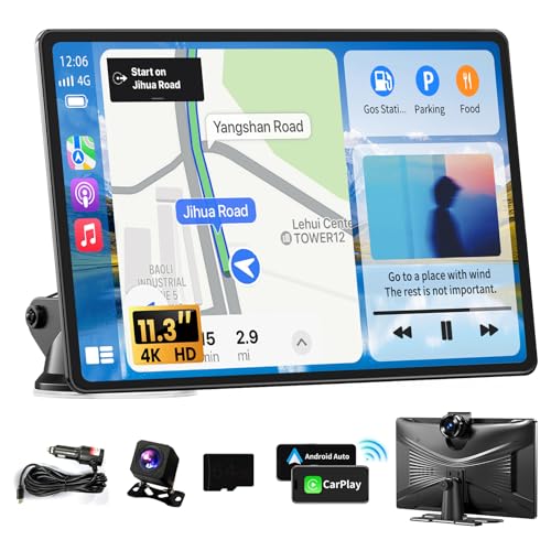 Wireless Carplay Screen for Car, 7" HD Portable Car Stereo Touch Screen with CarPlay and Android Auto, Backup Camera, Car Audio Receivers with Mirror Link/Bluetooth/Navigation/Voice Control