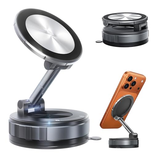 LnkXT Vacuum Magnetic Phone Holder for Car,Full Metal Body,Vacuum Suction Phone Mount,Magnetic Car Mount for iPhone, Folding Holder for iPhone and Android (Black)
