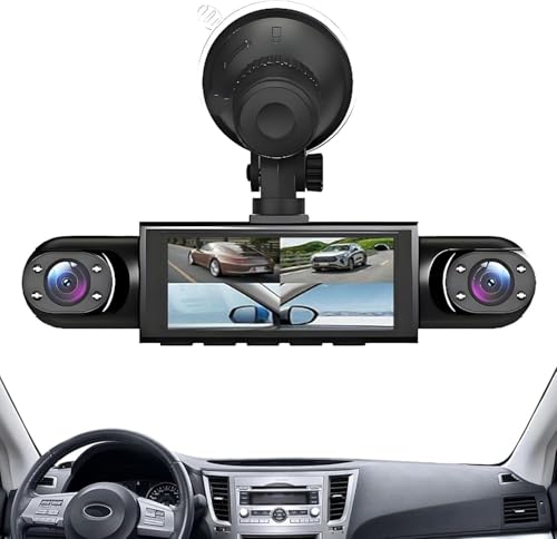 CAMECHO 3 Channel 1080P Rear View Mirror Camera with WiFi, 9.66" Touch Screen Triple Mirror Dash Cam Front and Rear Inside with 64GB Card, G-Sensor, Night Vision, Reverse Assist, Backup Camera for Car