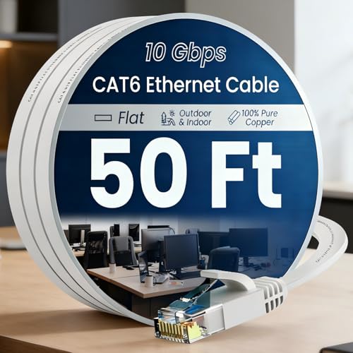 CableGeeker Cat6a Ethernet Cable Slim 50ft - 28AWG UTP Pure Copper Patch Cable, 10Gbps High-Speed Cat6 Ethernet Cable, Flexible Ethernet Cord & Internet Cable for Patch Panel, White