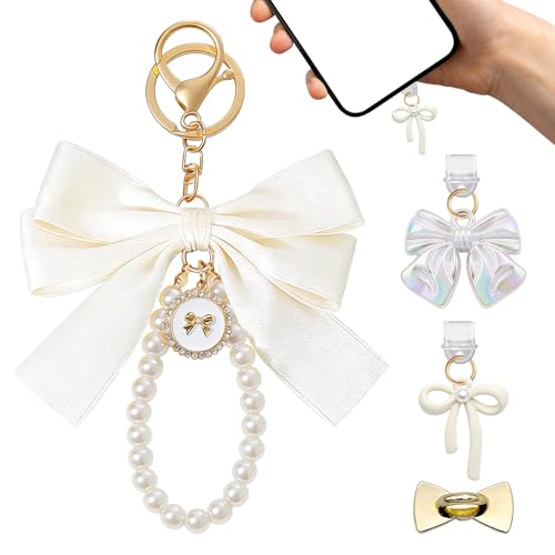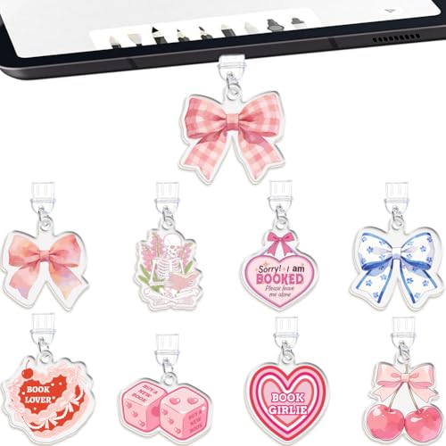 3Pcs Dust Plug Charm Chain Set for Kindle, Including Cute Bow Decor with Hook & 2Pcs Type-C Anti-Dust Plugs, Decorative and Protective Accessories Gift for E-Reader Users