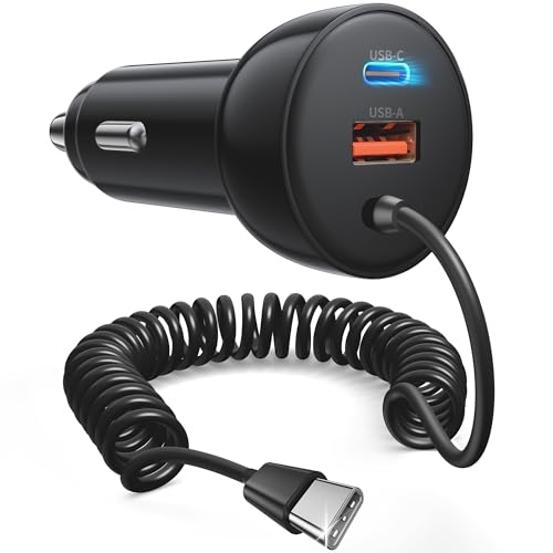 Car Phone Charger Retractable Car Charger 4 in 1 Fast Charger 30W Double USB Type C Retractable Cables 31.5 Inch and 2 USB Ports Car Charger Adapter for i-Phone 17/16/15/14/13/12,Galaxy,Pixel,iPad