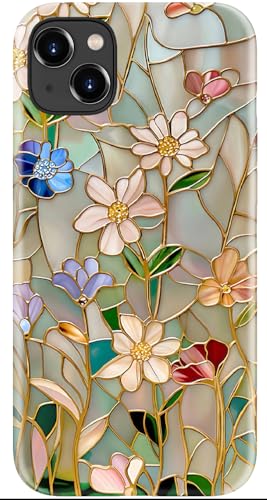 EYZUTAK Case for iPhone 17 Pro, Colorful Retro Oil Painting Printed Flower Laser Glossy Pattern Cute Curly Wave Edge Exquisite Phone Cover Stylish Durable TPU Protective Case for Girl Women-Green