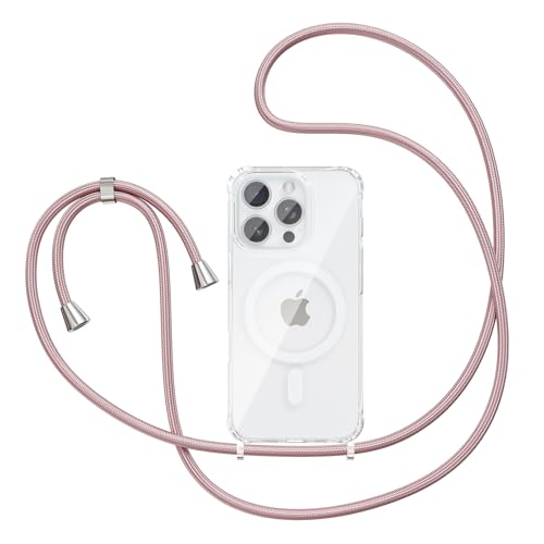 VooDirop for iPhone 16 Case with Crossbody Lanyard, Compatible with MagSafe, Clear Magnetic Phone Case with Strap Adjustable, Shockproof Drop Protection, for iPhone 16 6.1''