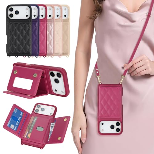 Ephoou for Apple iPhone 17 Pro Max Case Crossbody Lanyard Wallet with Card Holder, Wrist Strap, Detachable Adjustable Shoulder PU Leather Shockproof Cover for iPhone 17 Pro Max XK-Black
