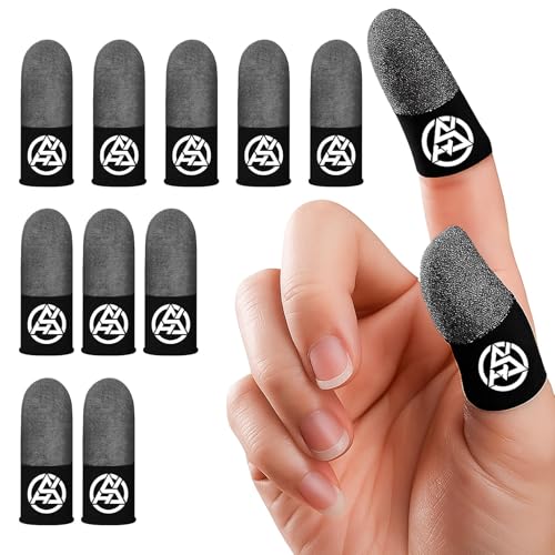 10 Pcs Gaming Finger Gloves Sleeves, Gamer Touch Screen Finger Tips, Silver Fibers Breathable Sweatproof Mobile Game Assist Smooth Thin Thumb Protector Compatible with All Touchscreen Devices