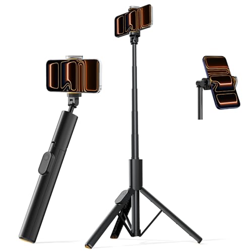 TONEOF 68" Magnetic Selfie Stick Tripod with Aluminum Strong Magnetic Holder for Magsafe, 360掳 Rotatable Travel Phone Tripod Stand with Metal Ring & Rechargeable Remote for iPhone/Android锛圤range锛