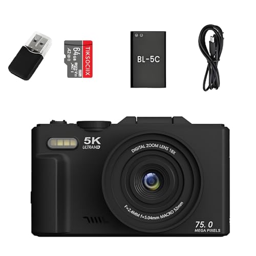 5K Digital Camera, Upgrade Autofocus 72MP Vlogging Camera Photo with 32G SD Card, 2.83'' Screen, 2 Batteries, 16X Zoom, WiFi Point and Shoot Digital Camera for Kids Beginners