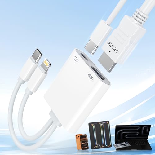 Aplimln [MFi Certified] HDMI Adapter for iPhone iPad, 1080P HDMI Cable Adapter Sync Screen Video & Audio Digital AV Converter with Charging Port on HDTV/Projector/Monitor (No Power Need)