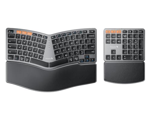 ProtoArc Wireless Ergonomic Keyboard, EK04 2.4GHz Wireless Ergo Keyboard with Separate Numeric Keypad, Split Design, Wrist Rest, Rechargeable, for Desktop, PC, Laptop