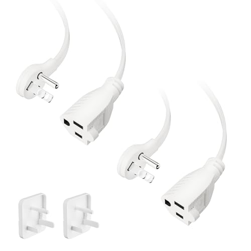 DEWENWILS 3FT 360掳 Rotating Flat Plug Extension Cord/Wire, 16AWG Multi 3 Outlet Extension Cord, 3 Prong Grounded Wire for Small Appliances, Christmas, 2 Pack, White