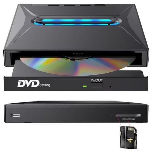 7 in-1 External USB DVD Drive & Blu-Ray Player, External Blu-ray Drive USB 3.0 & Type-C, 6X Blu-ray Sd/Tf Card Slots for Laptop Desktop Mac MacBook Windows 11/10/7 (1 pc)