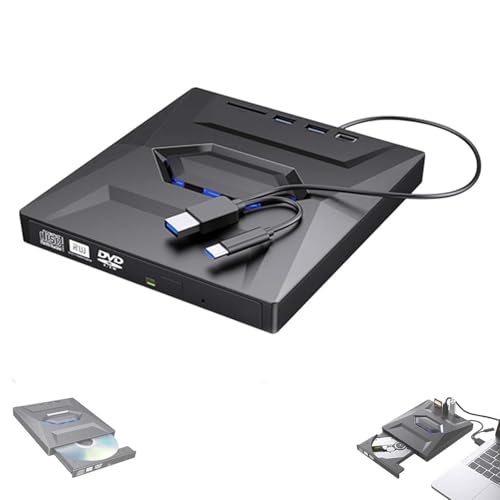MAHAHUM External CD/DVD Drive for Laptop, USB 3.0 & USB C Disc Writer CD Burner Ultra-Slim DVD player for laptop disc reader Compatible with Desktop PC Windows 11/10/8 Linux Mac OS Mac MacBook Pro/Air
