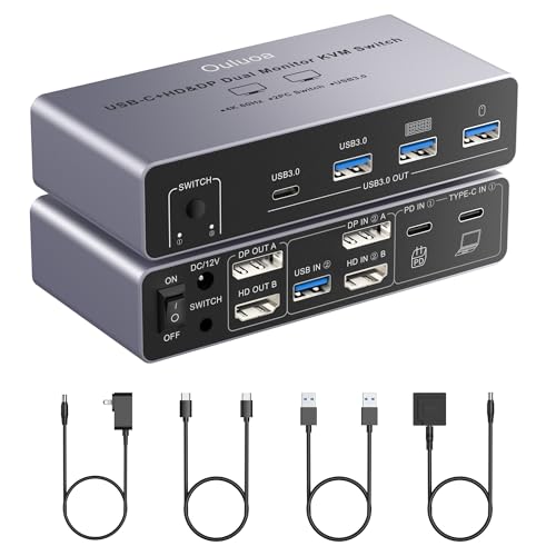 8K@60Hz HDMI Displayport KVM Switch 2 Monitors 2 Computers 4K@120Hz Dual Monitor KVM Switches Two Computers Share 4 USB 3.0 Port,Include DC12V Adapter,Desktop Controller,and 2 USB 3.0 Cables