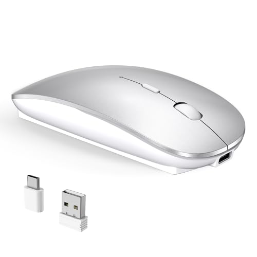 Bluetooth Wireless Mouse for MacBook Pro MacBook Air iPad Pro Tablet Computer PC Laptop, Silent Slim 4 Mode (Bluetooth 5.2/3.0&USB-A&USB-C) Rechargeable Mouse with Jiggler Mode - Black